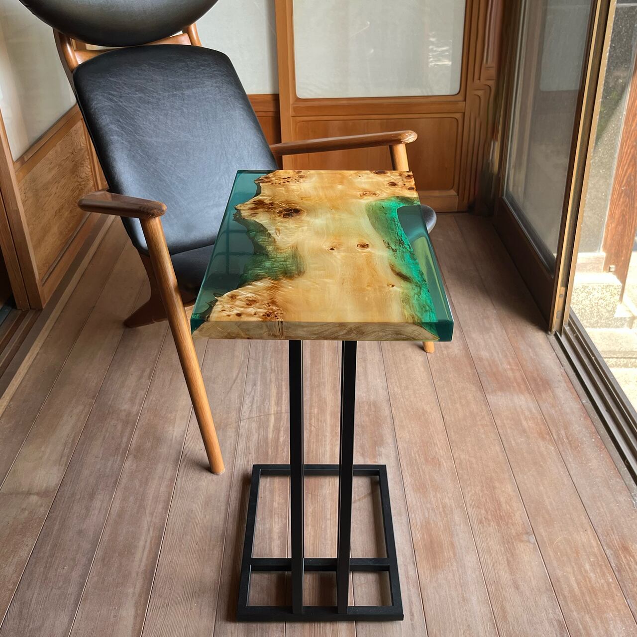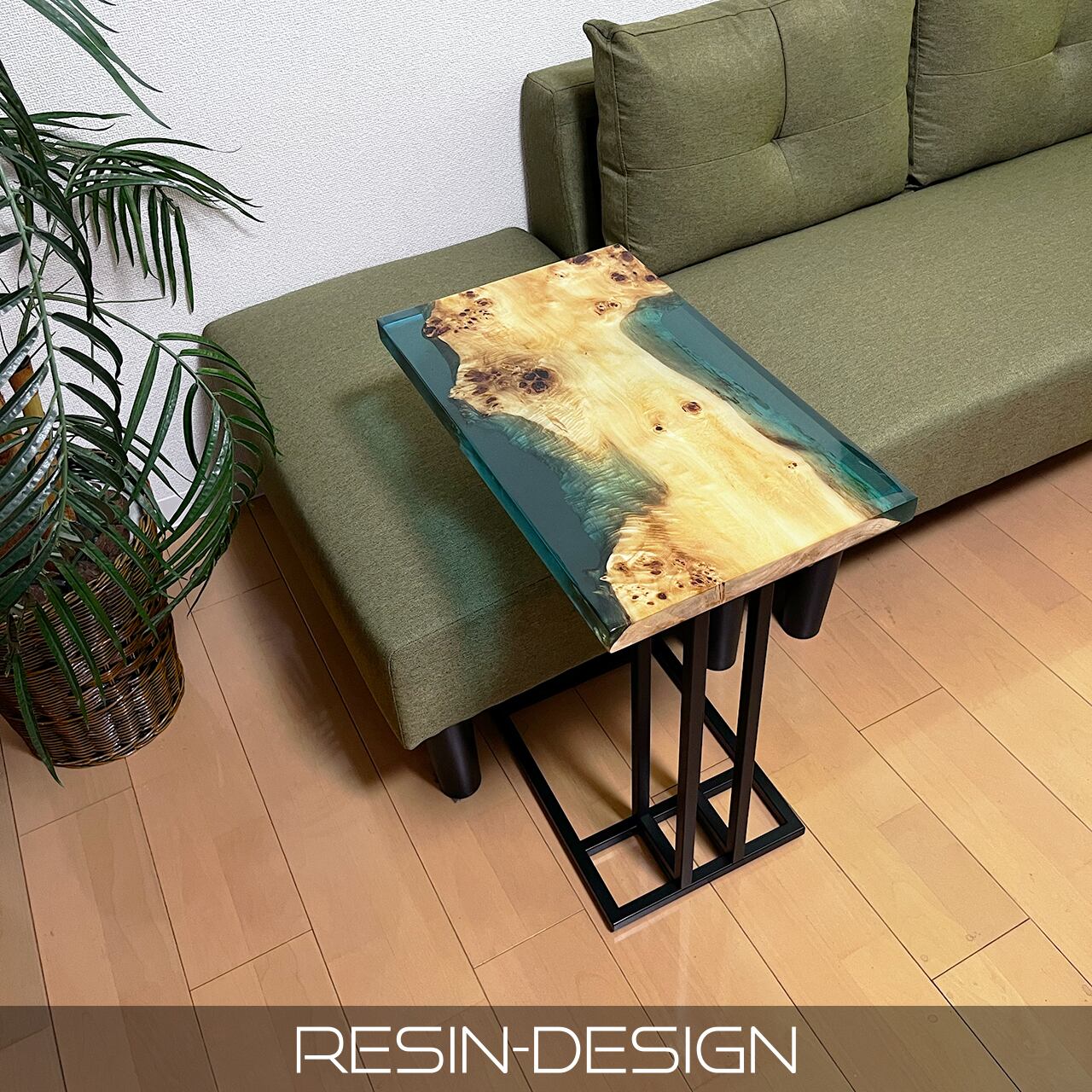 ポプラのレジンサイドテーブル50cm【木材:ポプラ】【レジン:エメラルドグリーン】