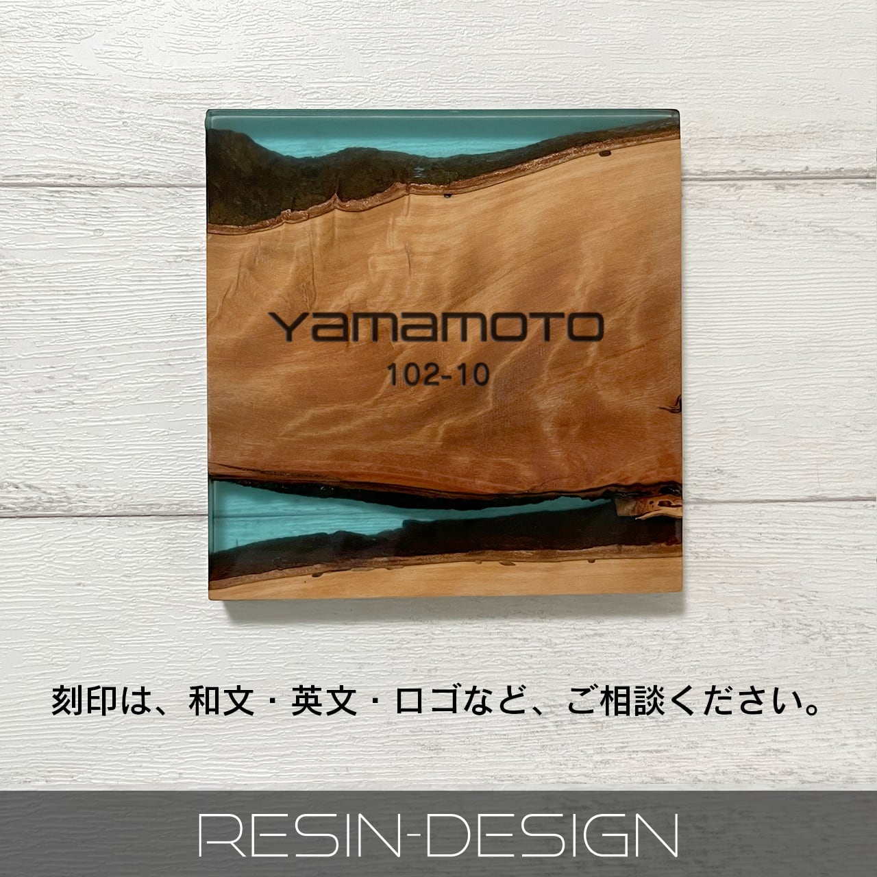 手作業で丁寧に仕上げられたこの表札は、光の加減や角度によって異なる輝きを楽しむことができ、お名前や家番号をセンス良く彫り込むことで、より一層個性的な演出が可能です。ご注文後には、イメージCG画像をメールでお送りし、確認後の刻印が行われるため、安心してご利用いただけます。特別な思いを込めたこの天然木とレジンの表札を、ぜひお客様の大切な場所に飾ってみてはいかがでしょうか。